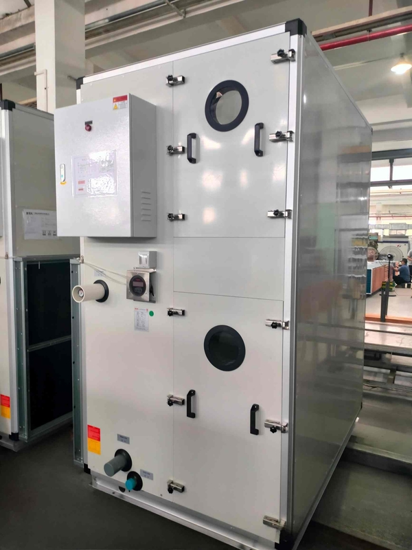 An Air Handling Unit (AHU) with an EC (Electronically Commutated) fan utilizes a more energy-efficient motor than traditional AC (Alternating Current) motors. EC fans offer several advantages, including lower energy consumption, precise speed control, reduced noise and vibration, and longer lifespan.