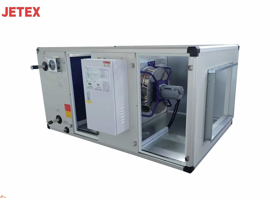 Air Handling Unit (AHU) with an EC fan uses a high-efficiency, brushless DC motor with integrated electronics for precise, variable speed control, leading to significant energy savings, reduced noise, and a more compact design compared to traditional AC motor-driven AHUs. These fans can match airflow to actual system needs, avoiding energy-wasting constant operation at maximum speed, and often offer features like plug-and-play installation and integrated monitoring for improved efficiency and maintenance.
